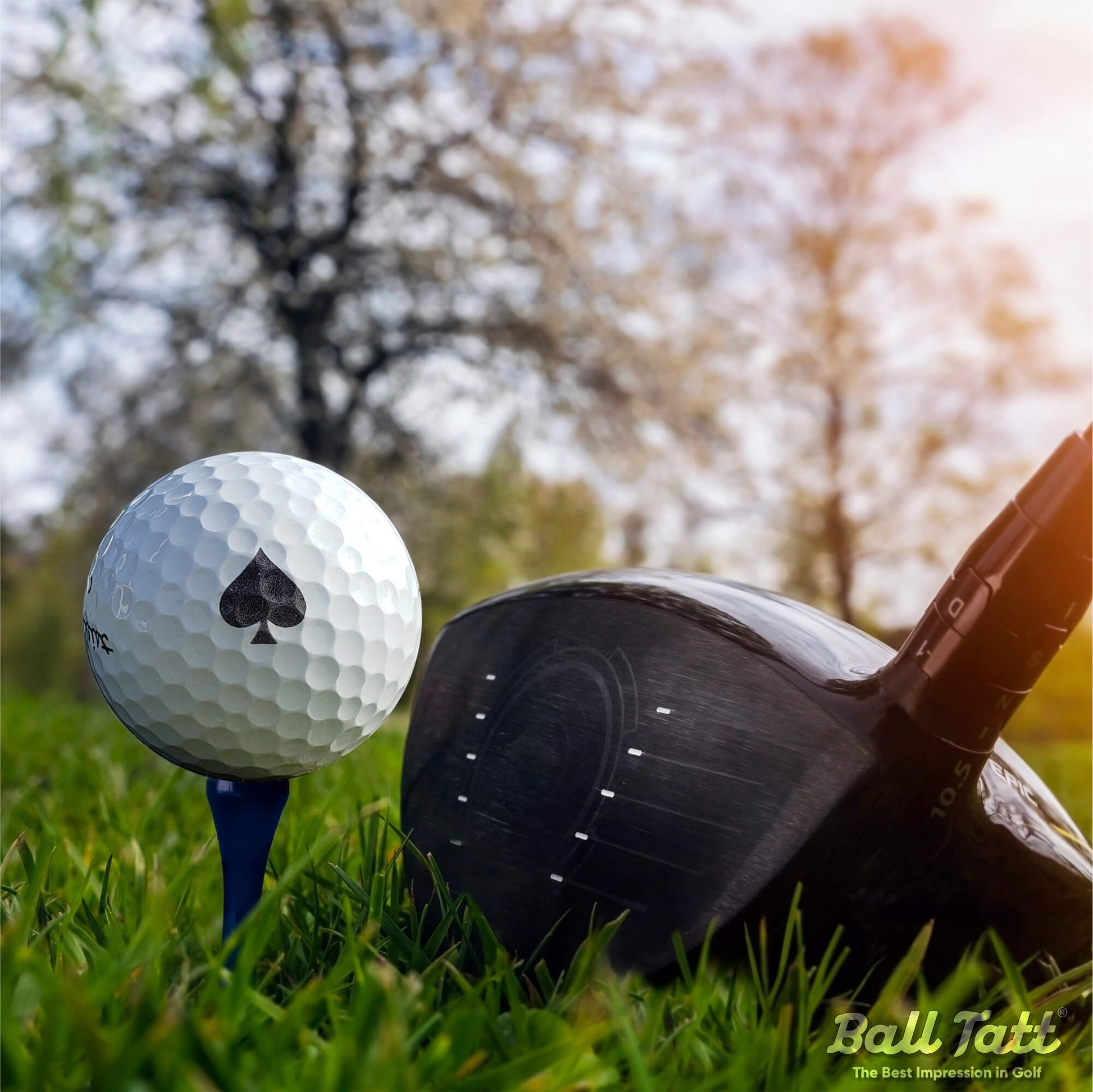 Don't gamble on someone else playing your ball. Get Ball Tatt's Ace of Spades distinctive mark on your ball. Tee it up and flush it.