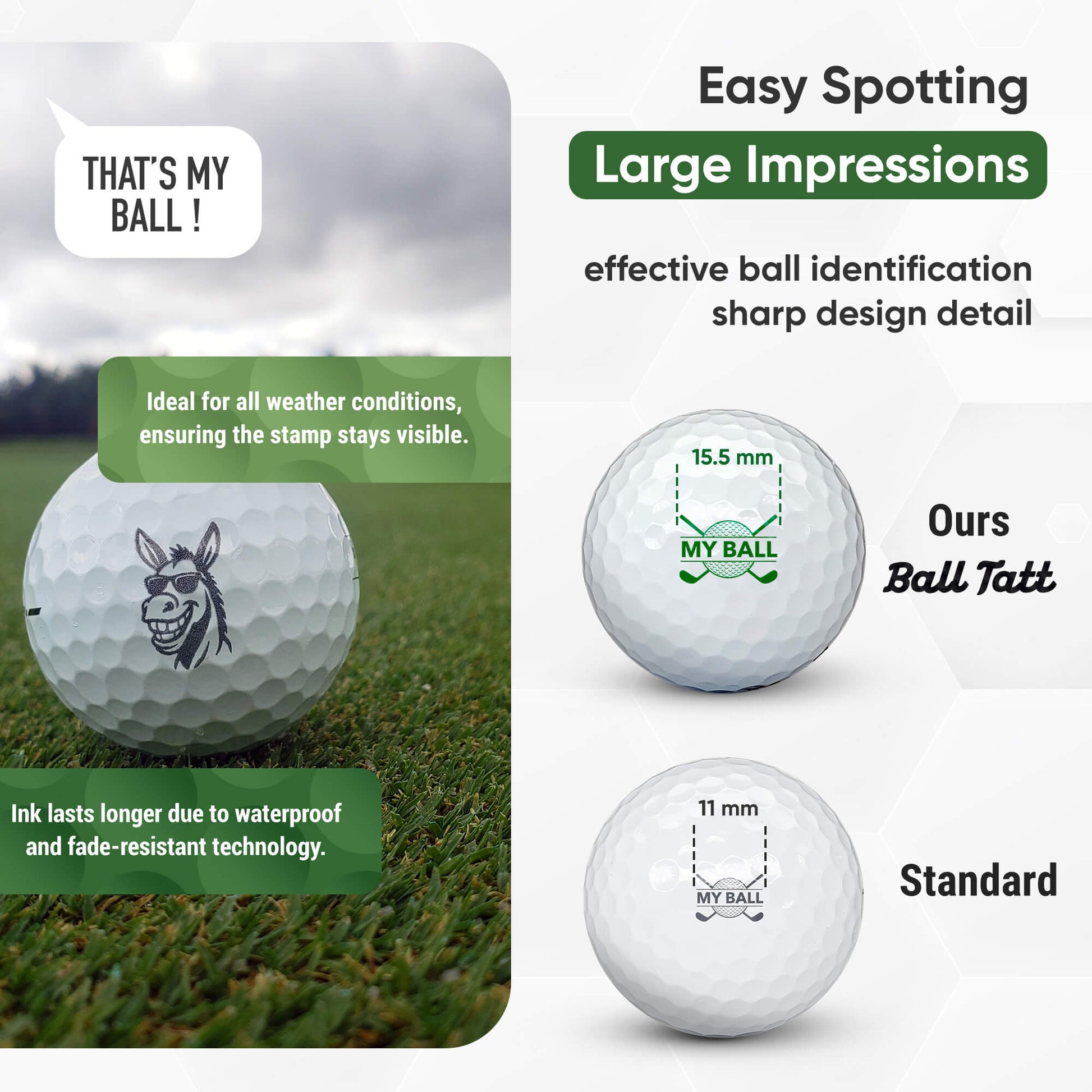 Waterproof & fade resistant, our quick dry stamping ink is less prone to smudging and designed to outlast the life of the golf ball.
