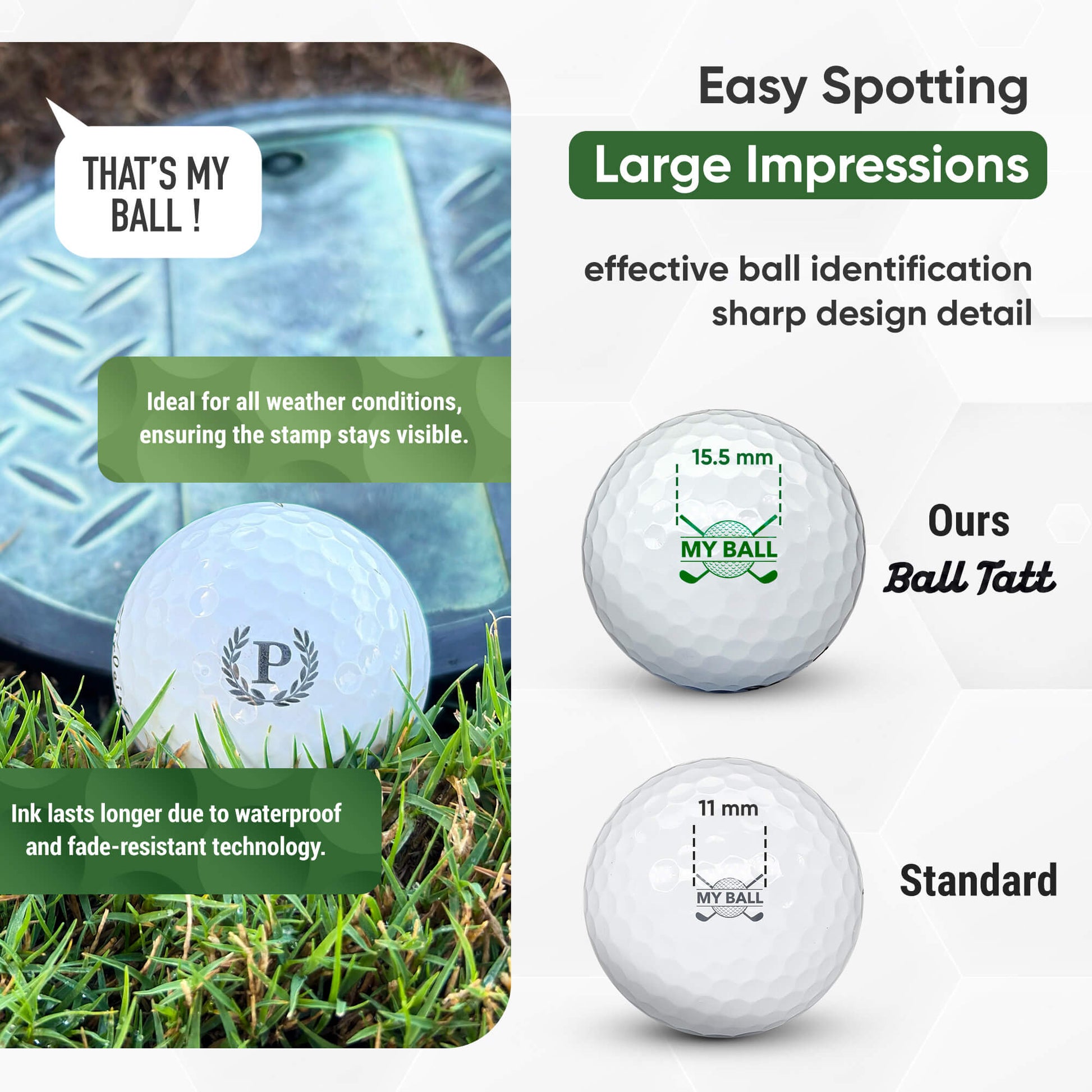 Waterproof & fade resistant, our quick dry stamping ink is less prone to smudging and designed to outlast the life of the golf ball.