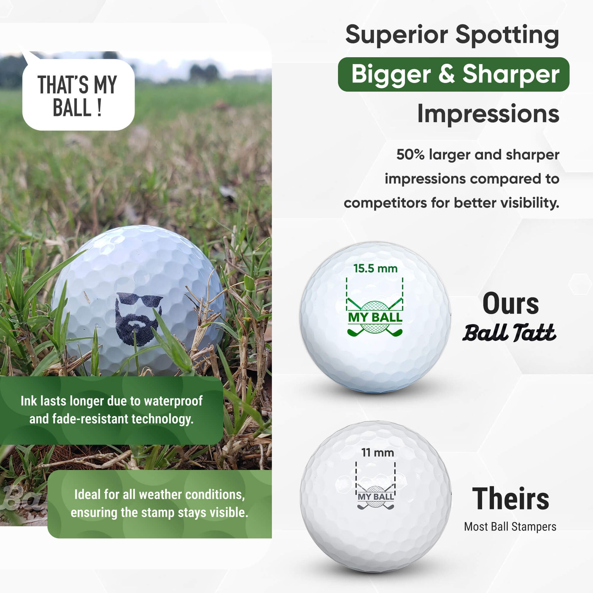 - BIGGER, WIDER, EASIER TO SPOT: Up to 50% larger & easier to recognize than most golf ball stamps! 0.75” x 0.5” golf ball stamper pad imprints BIG permanent impressions for fast & easy ball identification.