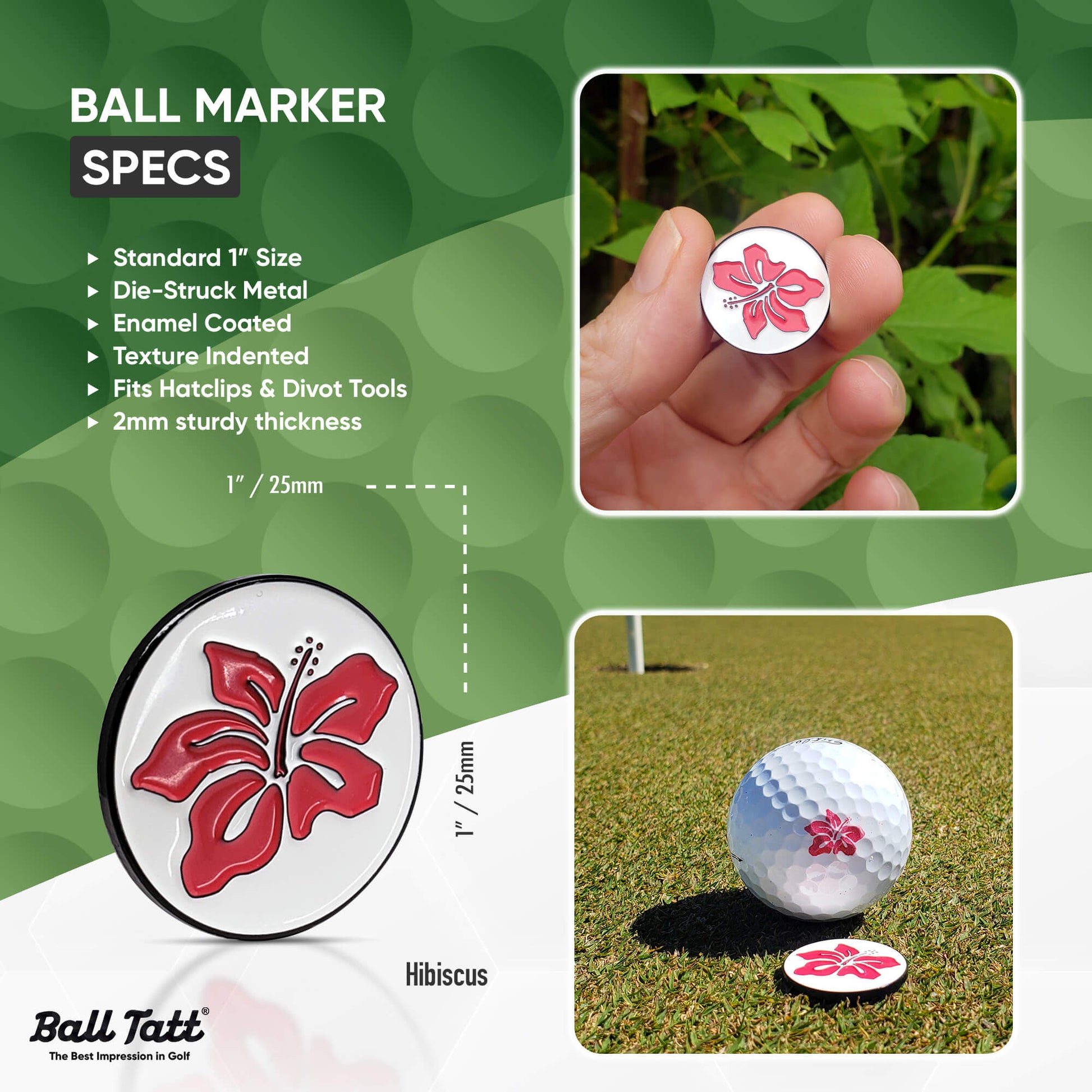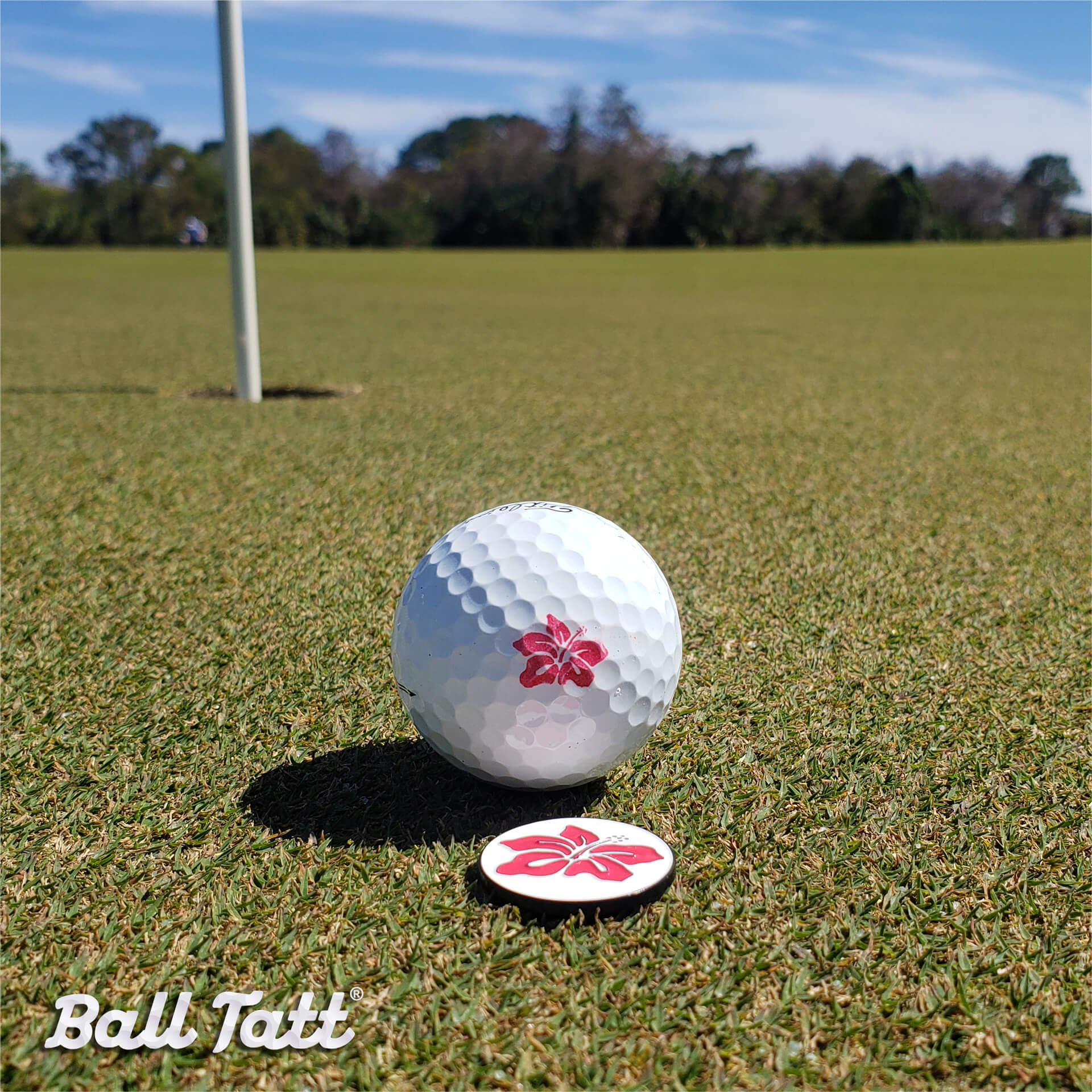Ball Tatt Hibiscus Stamp and Premium Die-Struck Ball Marker