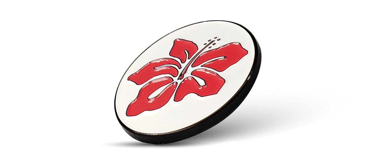 Our Hibiscus flower golf ball stamp is really distinct and easy to spot.
