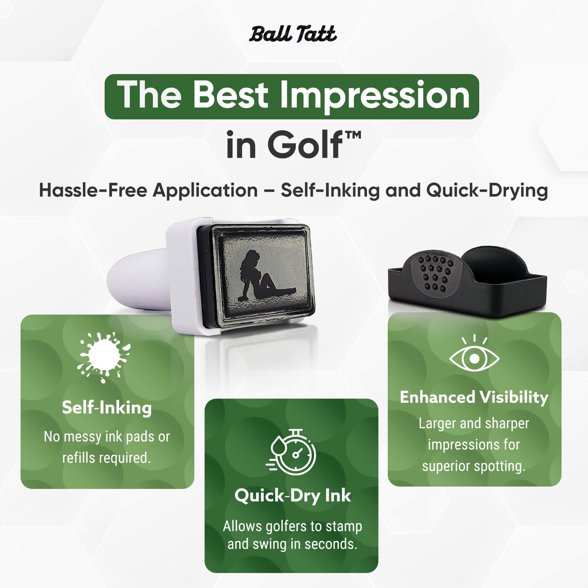 The iconic Ball Tatt "Mudflap Girl" is a timeless classic that might just be too sexy for your ball! But hey, we design for all golfers.