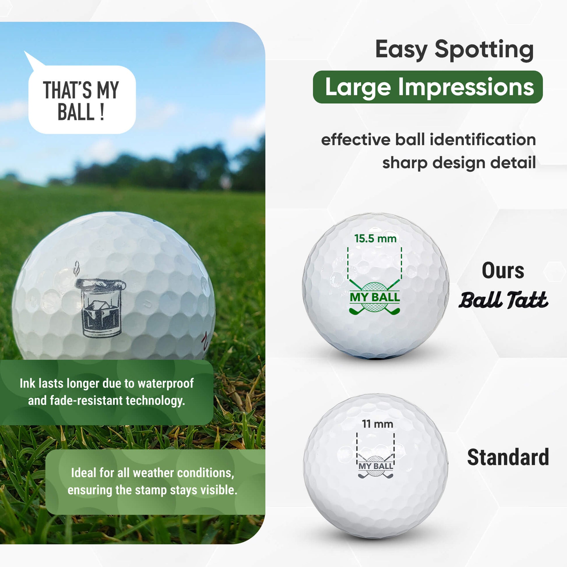- BIGGER, WIDER, EASIER TO SPOT: Up to 50% larger & easier to recognize than most golf ball stamps! 0.75” x 0.5” golf ball stamper pad imprints BIG permanent impressions for fast & easy ball identification.
